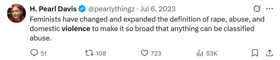She has built her reputation on challenging the narrative of male-perpetrated abuse. In a Pearl Daily episode in April 2025 – titled “Feminism is IMPLODING: Women Are Turning on Each Other” – Pearl argued that women often exaggerate DV claims for attention or to manipulate men, stating, “Women are not getting abused left, right, and center… [In] most abusive situations, the parties are abusing each other…It’s not a one-way street. Some women provoke or start fights, then cry victim when it backfires.”
